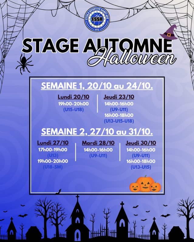 Le club de l’Étoile Sportive de Saint-Avé Basket propose des stages gratuits pour toutes les catégories, des U9 jusqu’aux Seniors, pendant les vacances d’octobre !